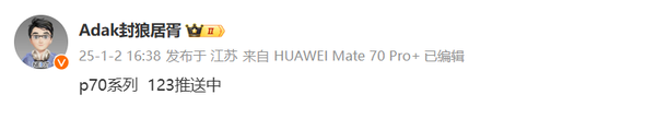 【CNMO科技音书】1月2日,据博主@Adak封狼居胥 音书,华为Pura 70系列启动推送HarmonyOS NEXT 5.0.0.123版块,其中Pura 70 Ultra当先推送。回看旧年12月中旬的数据,其时Pura 70系列出货量照旧超越千万台,用户量宽绰,因此分批推送新系统会愈加稳。